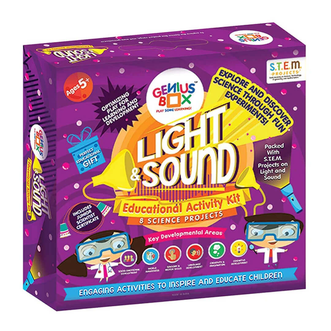 The Genius Box 'Light and Sound' kit is packed with 8 fun experiments to enage and educate children.